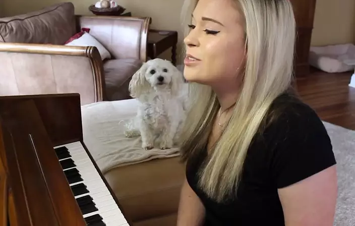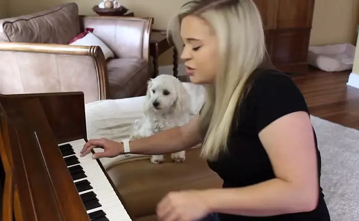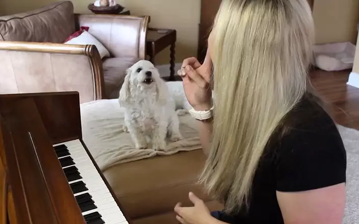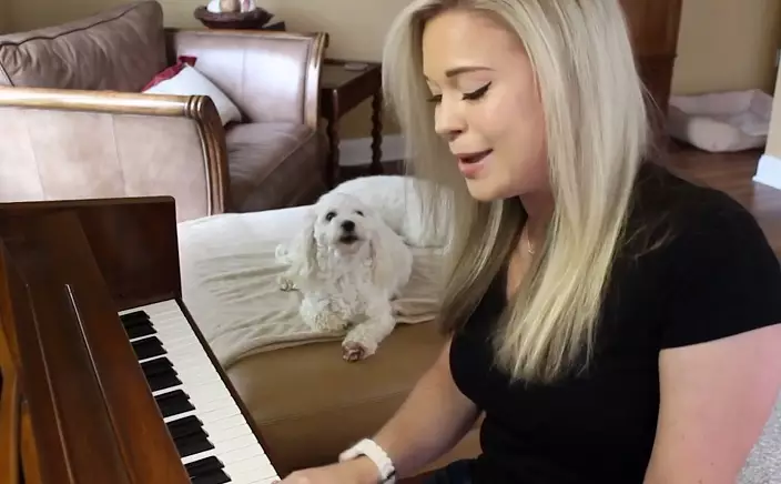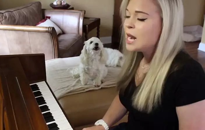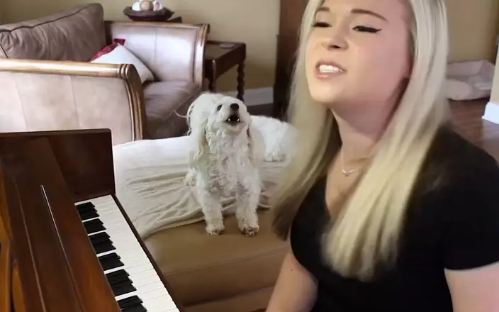 美國一名女子在家玩beatbox及彈琴時,身邊狗狗不停嚎叫,個人演奏終變了人狗大合唱。