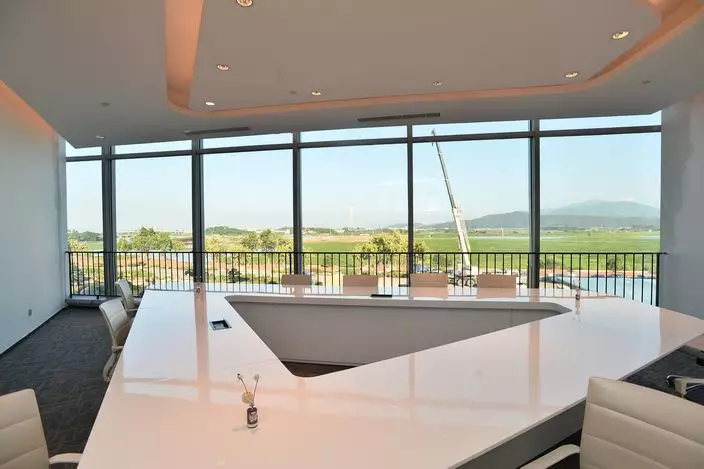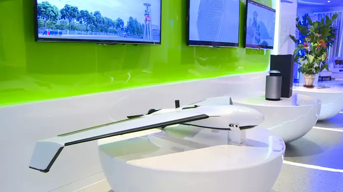 碧桂園展示廳展示了未來進駐科技小鎮的大型企業的高科技和智能產品。