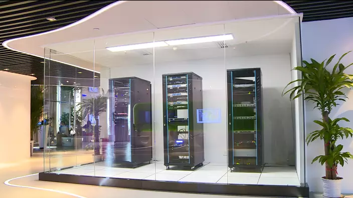 小鎮會建設一個佔地20萬平方米的數據中心,能容納1至2萬個數據機。圖為展示廳的數據中心模型。