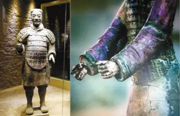 秦始皇兵馬俑在1970年代被發現開始,至到1990年代,由於技術問題,這種彩繪很難被保存下來,只能以相片和文字紀錄下來。但博物院經過多年探索研究,更成立小組,專門研究如何保存陶質彩繪文物,近年出土的兵馬俑已盡可能保留到出土時所見到的色彩。