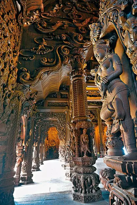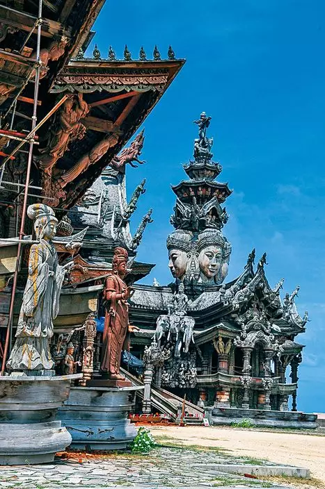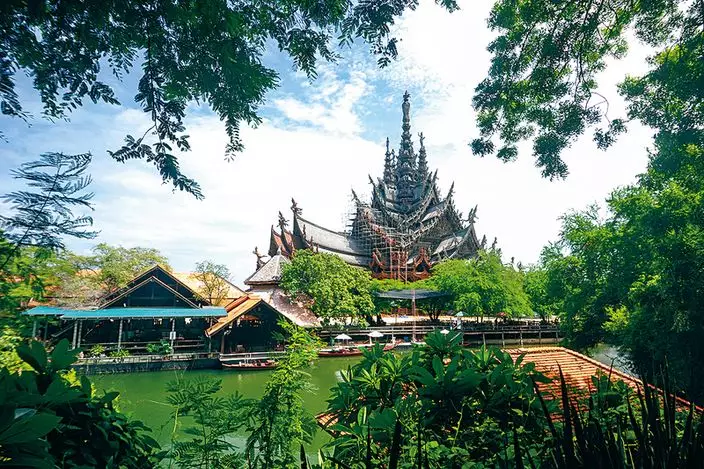 泰國人信奉佛教,所以泰國寺廟非常多,要講最具特色及風格的,一定要數芭堤雅(Pattaya)的真理寺(The Sanctuary of Truth),這屹立海邊、氣勢宏偉的廟宇,更是目前泰國最大的卯榫結構木建築。