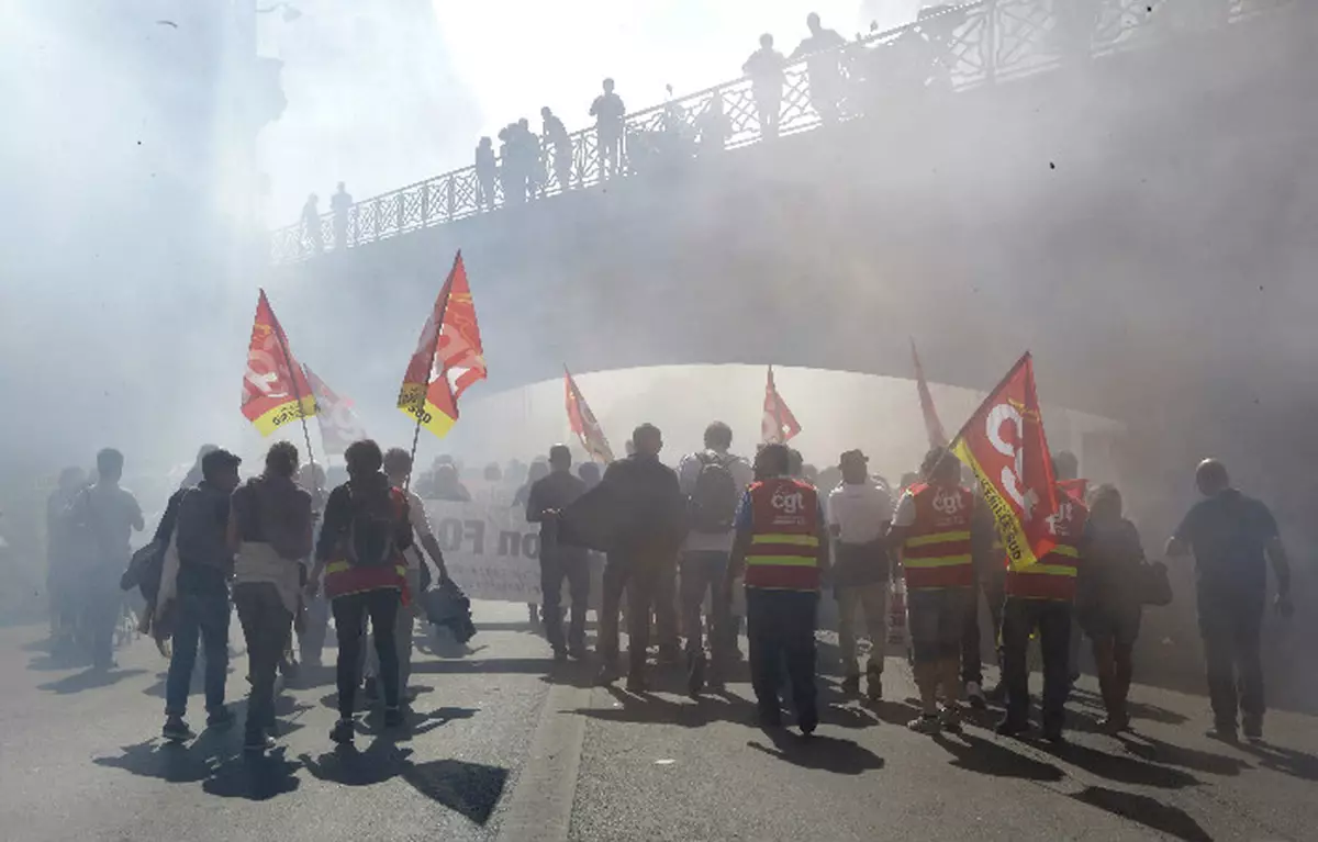 馬克龍早前指出「我絕不屈服,不向懶鬼、憤世者及極端者屈服」,堅持推行法案亦激化今次罷工。法國總工會(CGT)以「懶鬼」作遊行口號,數千名民眾到巴黎巿中心遊行,抗議政府強行通過勞動法改革方案。工會表示,在巴黎有6萬人出席示威活動,警方則估計人數大約有24000人。有示威者向警員投擲石塊,警方施放催淚彈驅散。