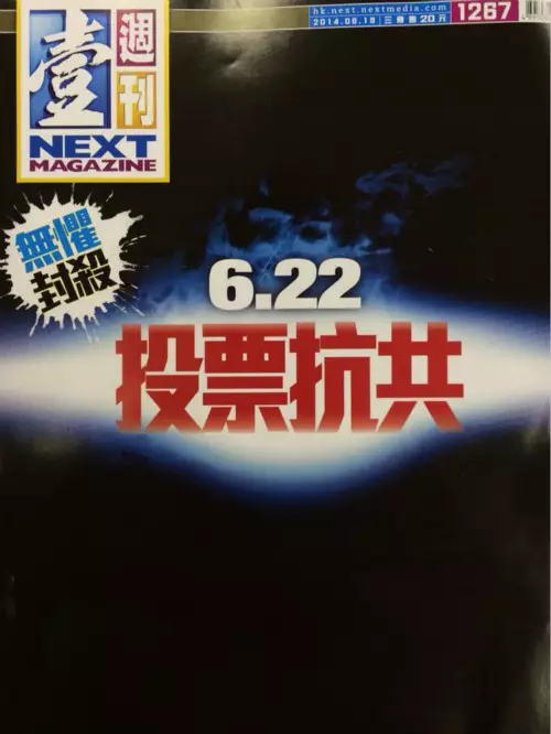 我在大學唸新聞與政治,後來再唸法律,這些學科給我的訓練,是多角度、批判性的思考,喜歡逆向思維,不愛人云亦云。這個星期看到舖天蓋地的政治宣傳,《壹週刊》的封面是「6.22 投票抗共」。6.22投票不是叫人三個方案選一揀民主方案嗎,為什麼變成「投票抗共」?咁樣即是發動所有市民去投票,同中共對抗,我們想清楚了嗎,準備好了嗎? 這是一條應走的路嗎?