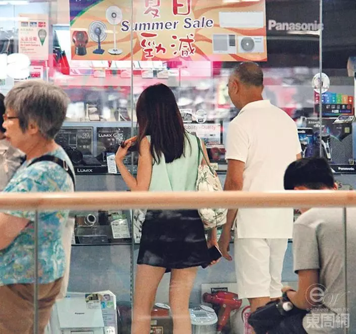 郭嘉文與爸爸閒逛商場時,一起看減價而實用的家庭電器,兩父女同樣知慳識儉