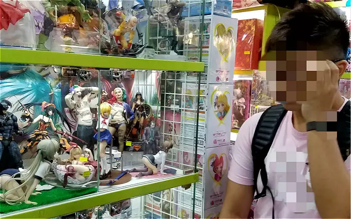 市面不少模型、玩具或精品店,櫥窗上均展示半裸、全裸或意識淫穢的少女造型首辦,其中旺角信和中心有十多家商店有售,價格由100多元至約2000元不等,吸引不少成年動漫迷選購,部分中學男生放學閒逛時,被「裸女」吸引駐足,也有未成年少女看到後一臉尷尬或大笑。