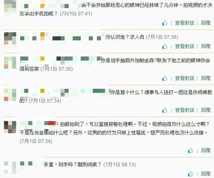 網民不但憤怒恤衫四眼男惡行,要求網民人肉起底;亦有網民慨歎乘客只顧拍片,沒有出手相助。警方已介入調查,但由於之前未有接獲報案,影片情節仍有待進一步確認。