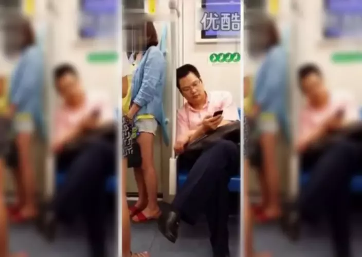 網上星期一下午開始瘋傳一段33秒短片,看到在上海有年輕熱褲女搭地鐵,她站在車門旁邊,背脊倚在座位旁的玻璃。在她身後坐着的恤衫四眼男出鹹豬手「撩」兩下大髀。熱褲女連忙轉身,但恤衫四眼男若無其事做低頭族看手機,熱褲女顯得一臉茫然唯有啞忍,隨後向車門挪動半個身位,但無離開。