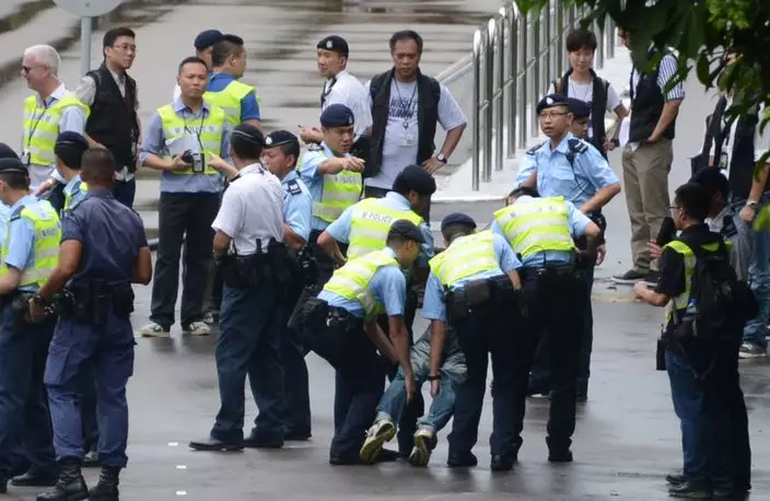 「示威者」被警員制服帶走。