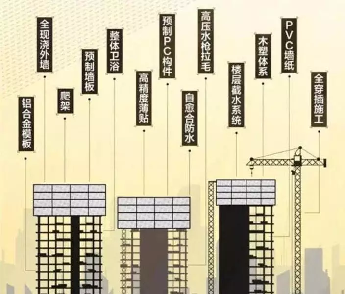 所謂SSGF,即“Sci-tech科技創新”、“Safe&share安全共享”、“Green綠色可持續”、“Fine&fast優質高效”四大核心理念,以裝配、現澆、機電、內裝等工業化基礎,革新傳統建築技術,包括模具空中化裝配、全穿插施工管理、人工智能的應用等。