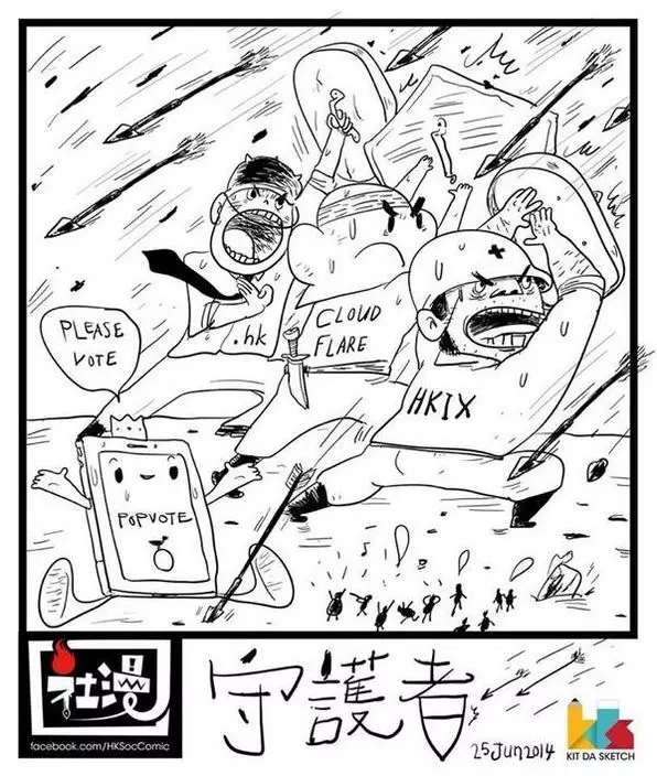 6.22公投的「保衞戰士」CloudFlare成功抵擋黑客攻擊,《星島日報》昨日報道指CloudFlare與美國中央情報局有業務關係,同時替不少黑客組織和伊斯蘭武裝組織提供網絡保護服務,背景敏感。「佔領中環」行動回應指,與CloudFlare合作只是「在商言商」,最重要是可以「頂住」黑客攻擊。
