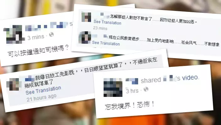 拍攝並上載影片的網民聲稱是日前放工時在西鐵內拍攝,車內乘客都係「眼望望」就算,但指該名吸煙乘客「食咗幾啖就落車」。片段被瘋狂share,網民直斥乘客吸煙行為離譜,有人認為應該即時報警,又指責在旁乘客為何不舉報,「怎解那些人敢怒不敢言了......現在公民教育退步」。有網民就認為吸煙乘客行為「忘我」恐怖。