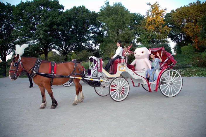 野餐前法拉就帶了胡巴坐中央公園內的著名馬車,「好多遊客來都要坐,經典美劇《色慾都市》(Sex and the City)中的女主角Carrie也在劇中坐過馬車,慢慢行氣氛好浪漫㗎。」