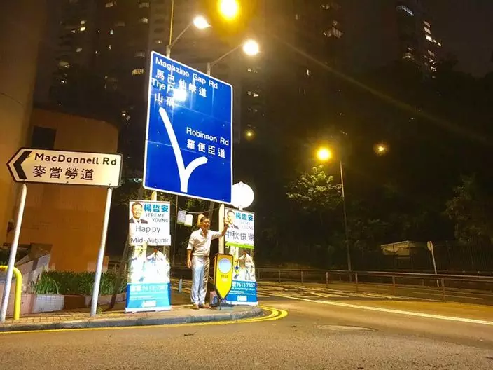 楊哲安中秋企街拉票直到深夜,才收拾回家。(楊哲安facebook圖片)