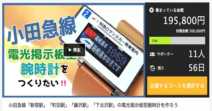 今次要集資的創意手錶一共有4款,靈感分別是來自小田急線的新宿站、町田站、下北澤站及藤澤站。不單是顯示屏的外型,就連當中的時間字體、電車方向、終點站都與真的不相伯仲,還原度很高。每隻手錶售價約¥14,000左右,日本迷又好、電車迷也好,大家會想入手一隻嗎?如果成功集資的話,貨品會在今年12月中發貨。有了這隻手錶後,以後坐車應該就不會再趕不上了?⋯咦?