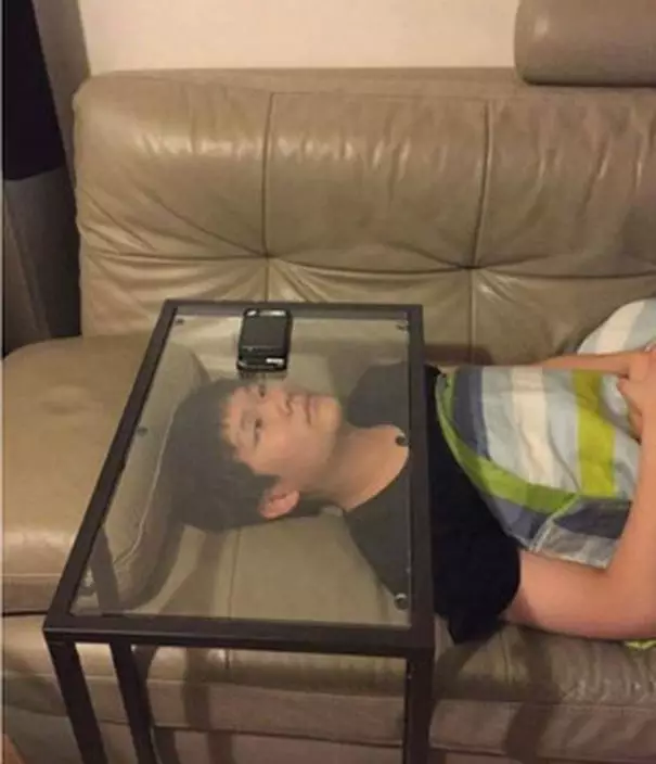 台灣一名網友在FB「爆笑公社」轉貼一張照片,照片中一名男子瞓係梳化上,面臉上方是一張IKEA出品的玻璃茶几,再將茶几當成手機「懶人架」,舒舒服服地瞓住睇手機甚至「煲劇」都無難度。網友更寫道﹕「IKEA終於推出我想要的家具了」。