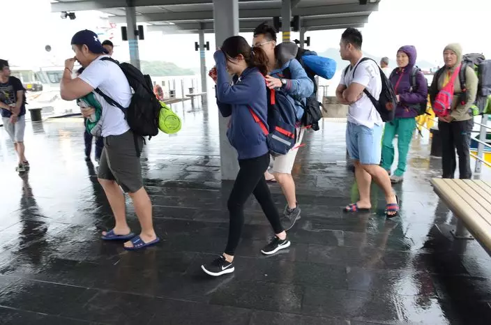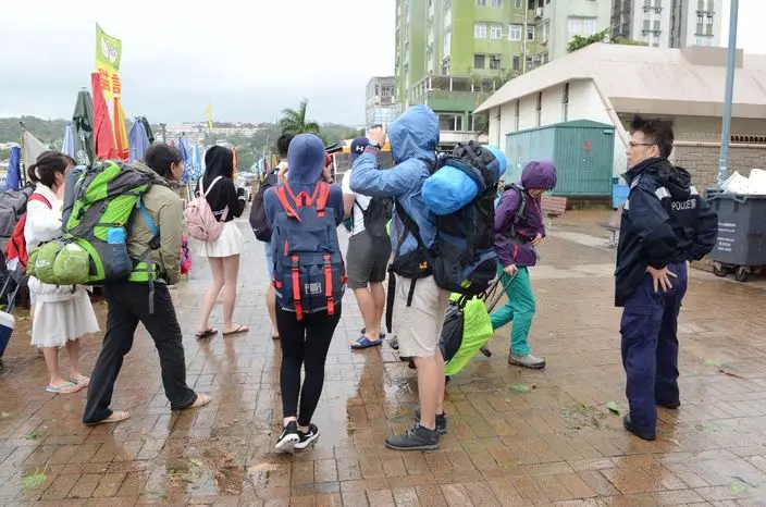 西貢橋咀島有11名男女露營,但在風暴下斷水斷糧,加上往來島嶼與西貢市中心的街渡停駛,他們於中午報警求助。