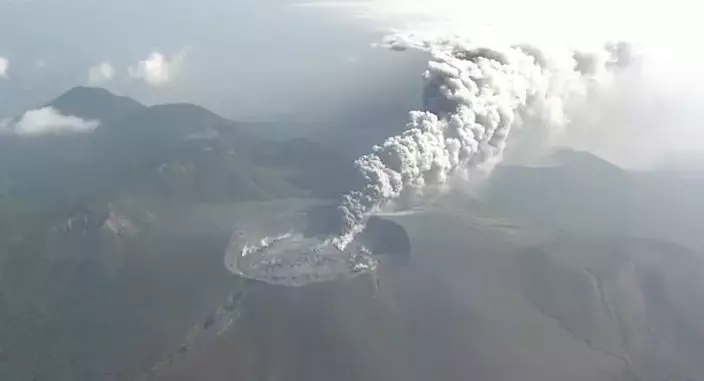日本九州的新燃岳火山再度噴發。(AP圖片)