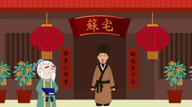 一看之下,頓時呆住了,原來發現書上的字一個也不認識。一向心高氣傲的蘇東坡感到很慚愧,滿面通紅,即時向老翁接連說:「對不起!」當老翁離開後,蘇東坡望一望房門前的對聯,便即時改了一改,成為:「發憤識遍天下字,立志讀盡人間書。」