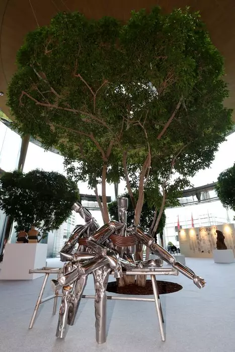 闊別30多年,九位當代著名藝術家再次碰頭,在中環交易廣場中央大廳舉行的《重聚》雕塑展覽,以藝術作品再會昔日老友。展出作品更包括台灣雕刻界表表者朱銘的《人間系列》,為煩囂的中環商業鬧市,帶來文化小小清新。