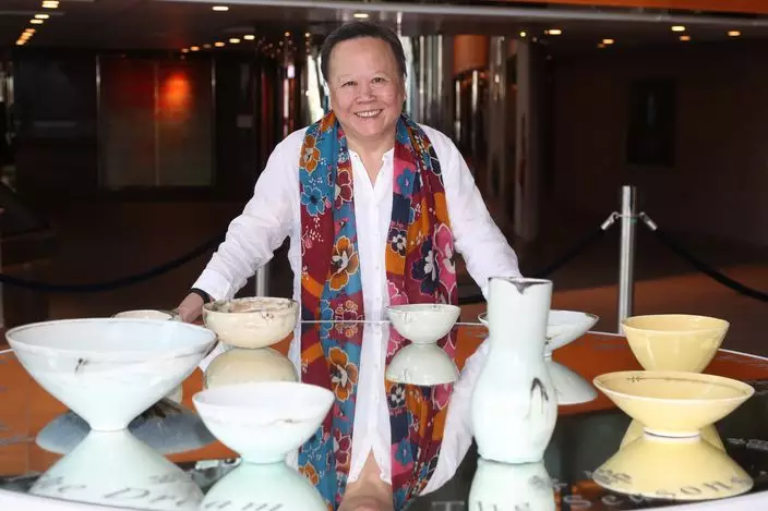 早年移居英國倫敦的香港陶藝家麥綺芬,專程返港參展,事隔多年再踏交易廣場、再見昔日好友、再尋回舊照片中的自己,她坦言「有點感觸」,當年有份參展的藝術家有兩位已仙遊了。今次她參展的一系列象徵《季節》的陶瓷,不同的色彩見證四季變遷。