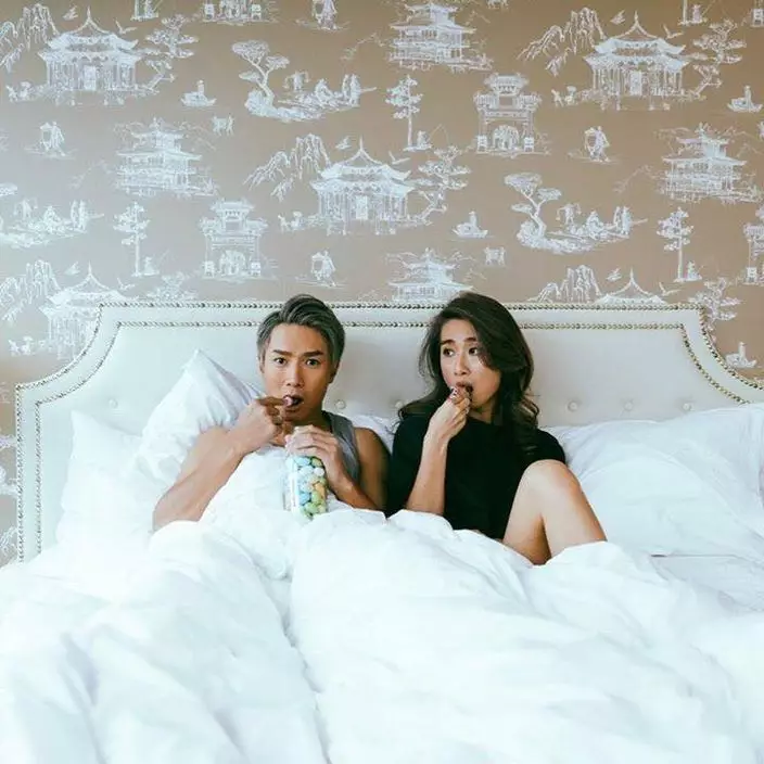 而台灣方面,林宥嘉與丁文琪的婚照像童話的森林小屋中,清新又夢幻;另一輯則是穿著連帽衛衣吃雪糕,鬥百厭!
