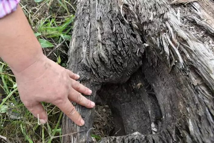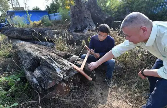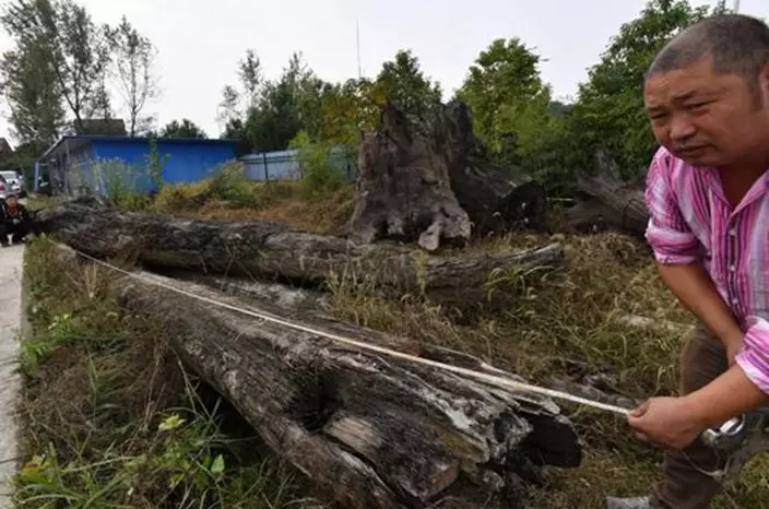 中國文物學會會員、高級園藝師蔡吉吾,割下一塊木頭鑑定後指,這是一根來自明代的金絲楠陰沉木,生長期200年以上,沉在水下有400年。收藏專家初步估算,這根木頭價值約2000萬人民幣。