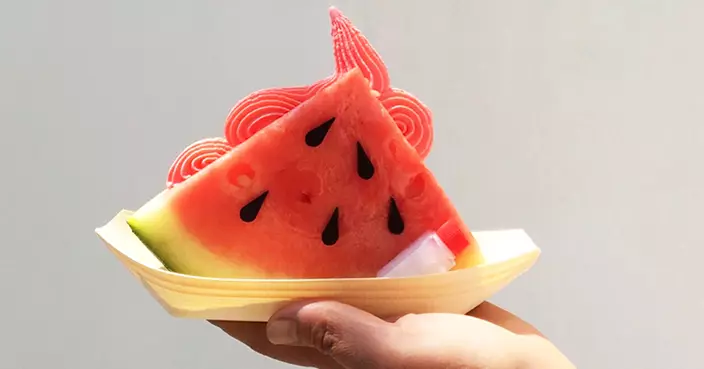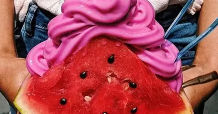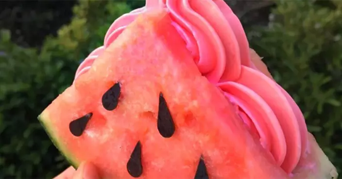 當西瓜加上雪糕,不就是雙倍冰凍感覺!澳洲一間餅店想到把這兩樣消暑食物連在一起,在厚厚的冰凍西瓜中間切開,加上粉紅色的西瓜軟雪糕,炎炎夏日馬上變成融化了。