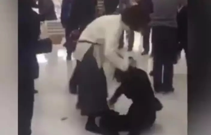 女職員被孕婦丈夫扯著頭髮拖行 (片段截圖)