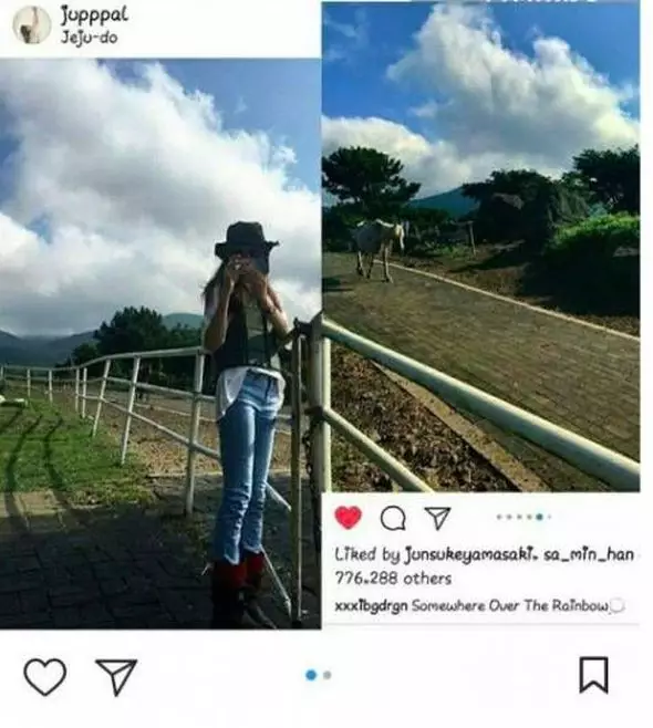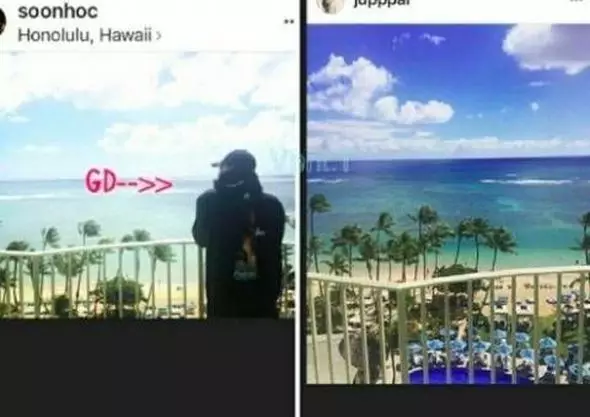 去年10月,BigBang在夏威夷舉行粉絲見面會後,GD就同成員大聲留在當地旅遊,二人均笑稱是他們的新婚旅行。不過,GD期間貼上一張挑戰叢林鋼索照,李珠妍也有挑戰這玩兒的照片,二人還疑以穿情侶裝。另一張快艇拖降落傘的高空照也是一樣,還有用餐的餐廳背景照、街景照、酒店房間露台照等都一樣!