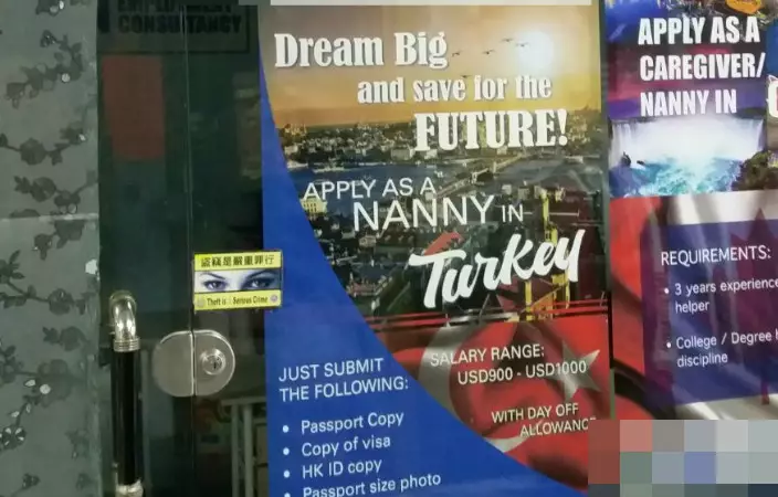 香港僱傭公會主席陳東風是一家僱傭中介的負責人,兩個多月前,其公司介紹來港、工作了約兩個月的一名菲傭,突然向僱主請辭,稱要到土耳其做護理員,「那個菲傭說親友介紹了一家在港島的僱傭中介給她,可以安排到土耳其工作。」