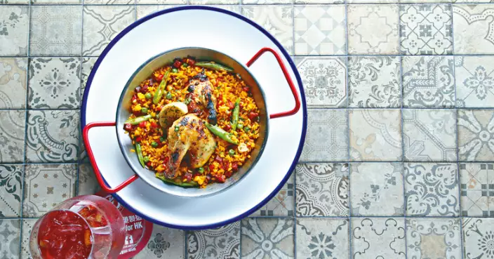 西班牙炒飯向來巨型,為了迎合客人胃口,Plato 86推出了迷你版。大廚將半隻西班牙三黃雞慢煮28小時再烤焗,三黃雞墊有一人分量金黃西班牙飯。