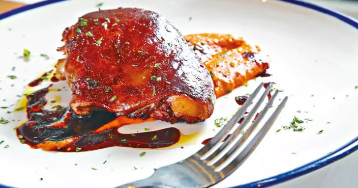 雖然走傳統路線,但主菜西班牙乳豬的做法就有點不同,大廚先將西班牙白毛豬配以清酒、味醂和八角等慢煮24小時,再放在荷葉上蒸焗五至六小時,接到客人落單後略為輕煎外皮,配以西班牙紅椒薯蓉奉客。