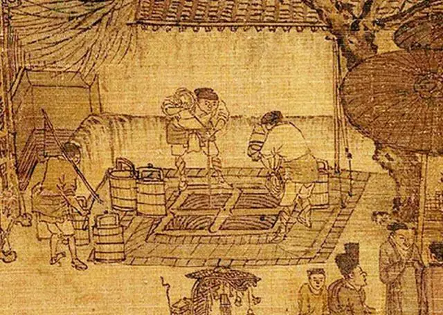 北宋張擇端《清明上河圖》中描繪的水井。汴京水源豐富但水質不佳,所以城內有公眾食用水井 (網上圖片)