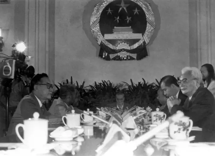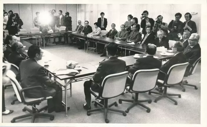 1986年魯平在港見基本法起草委員。(資料圖片)