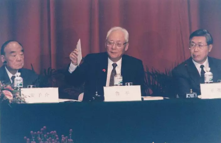 1987年8月22日,時任港澳辦公室副主任魯平在香港基本法草委會第五次會議上。(網上圖片)