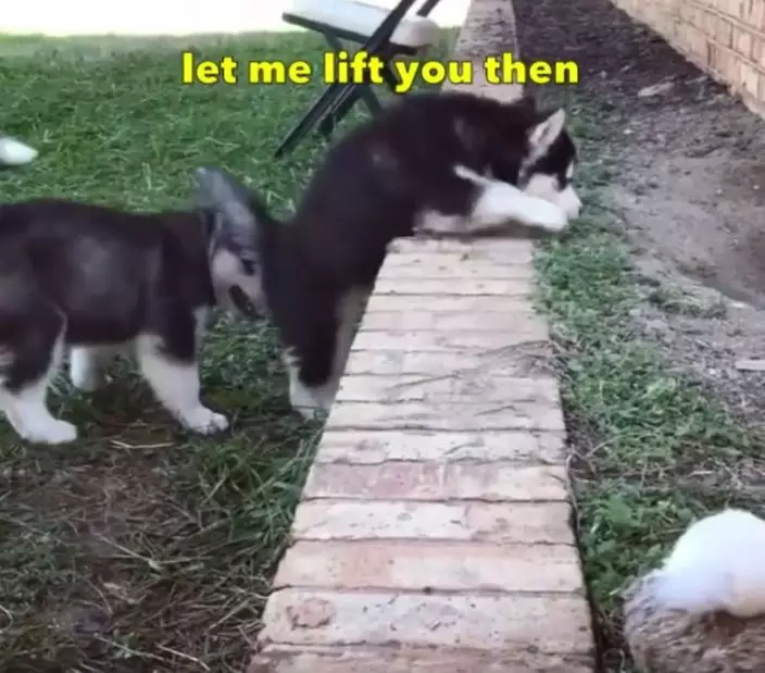 朋友之間互相幫助才能克服障礙,但外國兩隻小西伯利亞雪橇犬幫助對方時就反而令雙方都出醜,兩隻小狗努力跳上花圃的影片惹笑了不少網友。