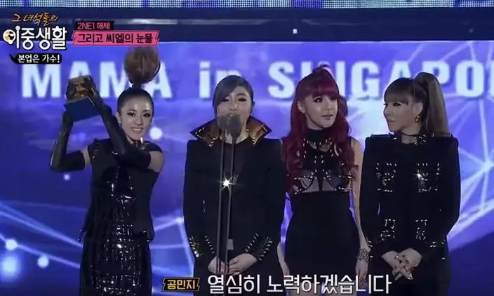 CL於昨晚(30號)播出的綜藝節目《雙重生活》中,回看4人初出道時在練習室天真爛漫的模樣,再一起踏上領獎台上的光輝日子,然後是敏智與朴春相繼合約到期不續約的新聞,2NE1自此只剩下CL與Dara,CL再次眼紅紅,無限感慨與悲傷。