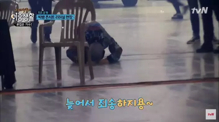 韓國天團BigBang成員太陽在綜藝節目《雙重生活》中,與G-Dragon(GD)、大聲和勝利重聚,在節目中表示想和大聲同日入伍;而姍姍來遲的GD就跪地行大禮道歉。