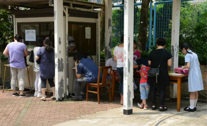 不少家長昨晨偕子女到中華傳道會劉永生中學申請叩門