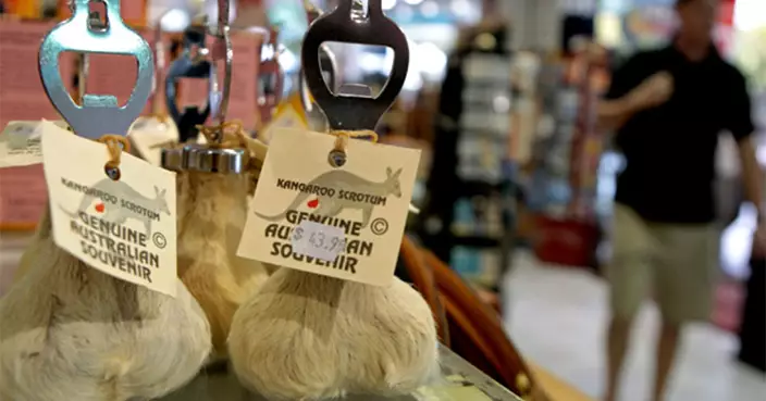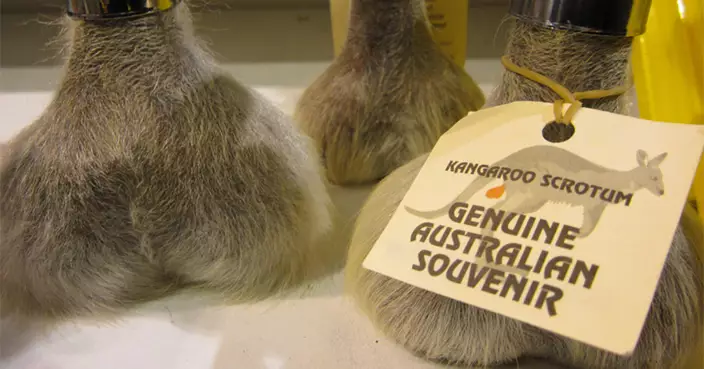 別擔心,這個開瓶器絕對合澳洲國家公園及野生動物保護條例,只是澳洲袋鼠繁殖速度太快,當局會定期殺袋鼠,造成肉乾、地毯等,剩下的蛋蛋為免浪費,會用來做成紀念品。