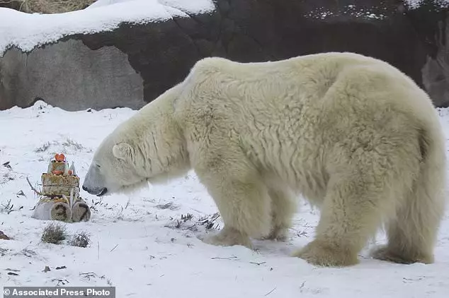美國最長壽北極熊Coldilocks,日前37歲生日, 費城動物園為牠準備了用花生醬、蜜糖、提子乾和魚製成的生日蛋糕。