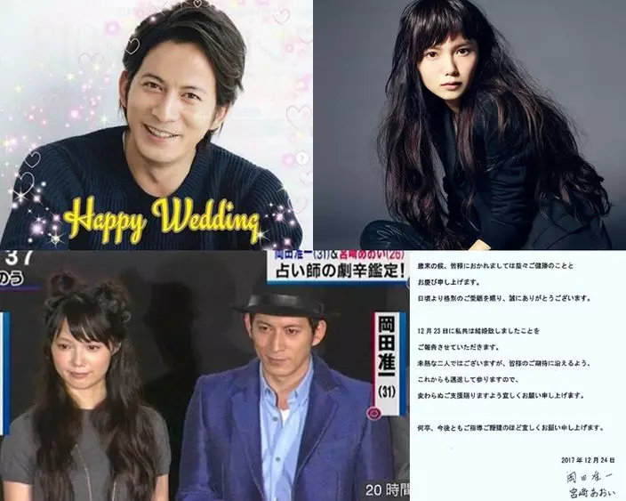 日本男團V6成員岡田准一和女星宮崎葵透過傳真,向大家公佈婚訊:「我們結婚了!」
