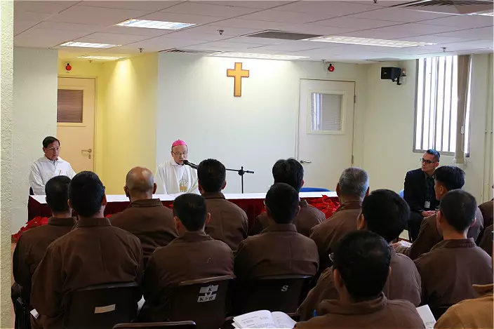 懲教署在聖誕節期間安排在囚人士參與聖誕節活動。天主教香港教區主教楊鳴章今日在懲教署副署長胡英明、懲教署司鐸伍永鴻執事及懲教事務總監督(赤柱監獄)陳偉健的陪同下,到赤柱監獄主持聖誕彌撒,為出席的在囚人士分享信仰哲理及送上祝福。楊鳴章亦到訪監獄醫院,探望病患的在囚人士,在節日中送上關懷與支持。