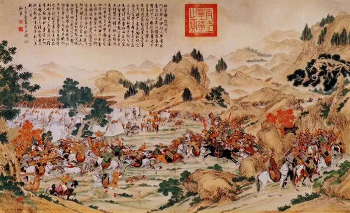 《平定準部回部得勝圖》 (局部) 中,清兵追擊準噶爾 (網上圖片)