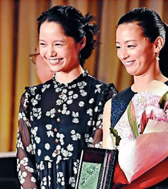 由日本報章《日刊SPORTS》主辦的「第30屆日刊SPORTS電影大賞」昨日在東京舉行頒獎禮,獲選為最佳男主角的菅田將輝、最佳女主角的蒼井優等得獎者,均有現身領獎,但最矚目的反而是剛新婚的宮崎葵。她以嘉賓身分頒獎給憑《解憂雜貨店》奪最佳女配角的尾野真千子。第二次結婚的她,並沒戴上婚戒。