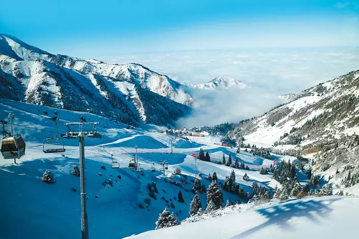 橫跨歐亞的哈薩克是世上最大的內陸國家,冬日在第一大城阿拉木圖不難找到壯麗雪山景色,乘纜車登山看著雲海與蓋雪峰頂交織的純白世界,有如圖畫一樣。