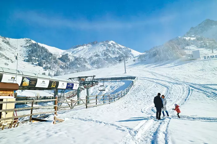 第一大城阿拉木圖的Shymbulak Ski Resort曾是2011年哈薩克主辦冬季亞運會時的滑雪賽場,身處城中已不時可看見雪山,當抵達距離市中心半小時車程外的雪山範圍,更有如進入純白國度,只見山路上的樹木已鋪滿樹掛,纜車站附近的全球最高海拔的麥迪奧溜冰場,更被厚厚積雪包圍,令遊客對山上的雪景更為期待。