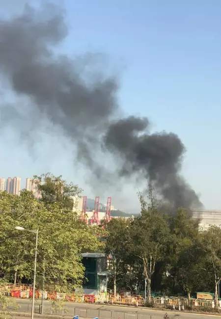吊機起火的黑煙,遠處都見到。
