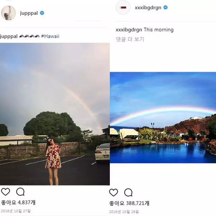 而去年12月15日的時候,兩人更前後腳前往濟州島,並在西歸浦見面。兩人住在GD的別墅,並度過了4日3夜的時光。再翻查李周妍的Instagram,她的確在那段約會的時間上載了一張照片,而背後有不少藝術作品,與GD在11月曾公開的作品一樣。