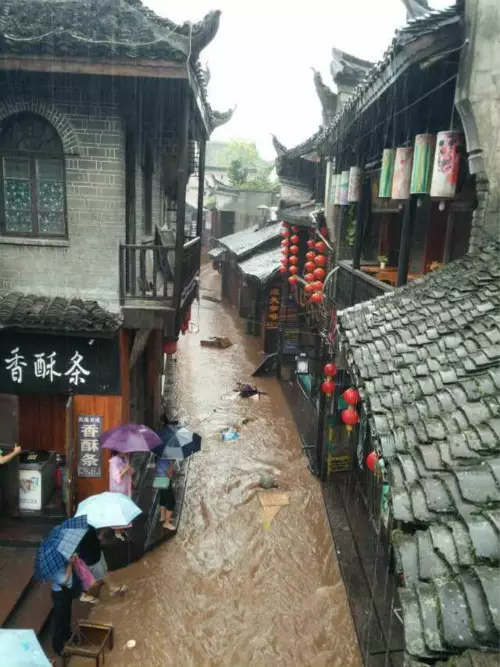 「遊客秒變難民,逃難時洪水都漫到我腰了。」正在鳳凰旅遊的江蘇網友「喵小綺」經歷洪水猛漲全過程,親眼目睹沱江的水位「漲了七八米」,昨天上午,她被消防官兵從城內救出,「現在古城一樓沒有了,旅行不易,且行且珍惜!」
